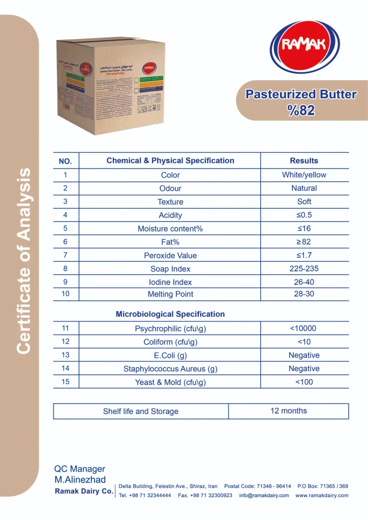 Ramak’s non-lactic butter, made from sweet cream, delivers a mild, creamy flavor and smooth texture, perfect for cooking, baking, and sauces. Lactose-free and rich in vitamins A, D, E, and K, it suits lactose-intolerant diets and blends easily due to its ideal melting point.
