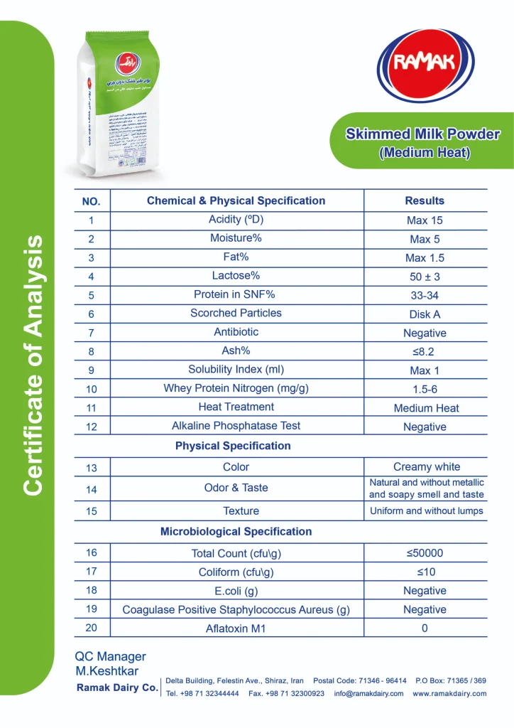 Ramak’s skimmed milk powder offers unique characteristics that distinguish it from similar products. These include excellent solubility, proper sinkability and dispersibility, as well as a natural, non-cooked milky flavor.